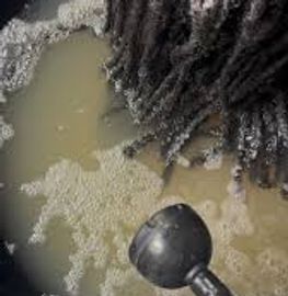 Locs are detoxified with Baking Soda and Apple Cider Vinegar. Clients sit and soak with mixture on hair for 30 to 45 minutes, to get impurities out of the hair and off the scalp.
